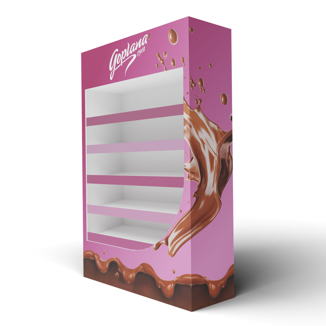 Stand POS pozwala efektywnie wykorzystać przestrzeń, np. przy kasach, alejkach czy witrynach. Działa tam, gdzie zwykła półka już nie wystarcza.