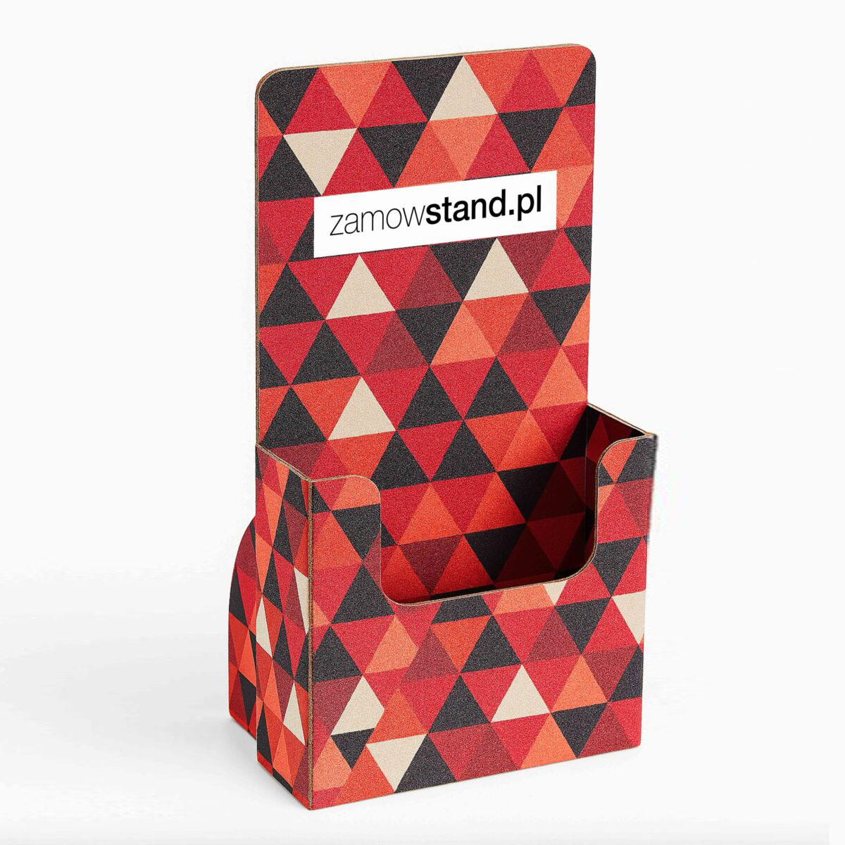 Mimo kompaktowej formy, ekspozytor mieści dużą liczbę materiałów marketingowych, ograniczając konieczność ich częstego uzupełniania. Wzmocniona konstrukcja z tylną podporą zapewnia stabilność na każdej powierzchni – ladzie, stoliku, biurku czy stoisku targowym.